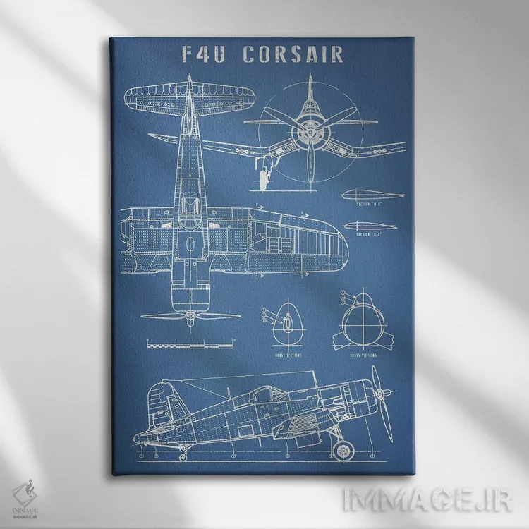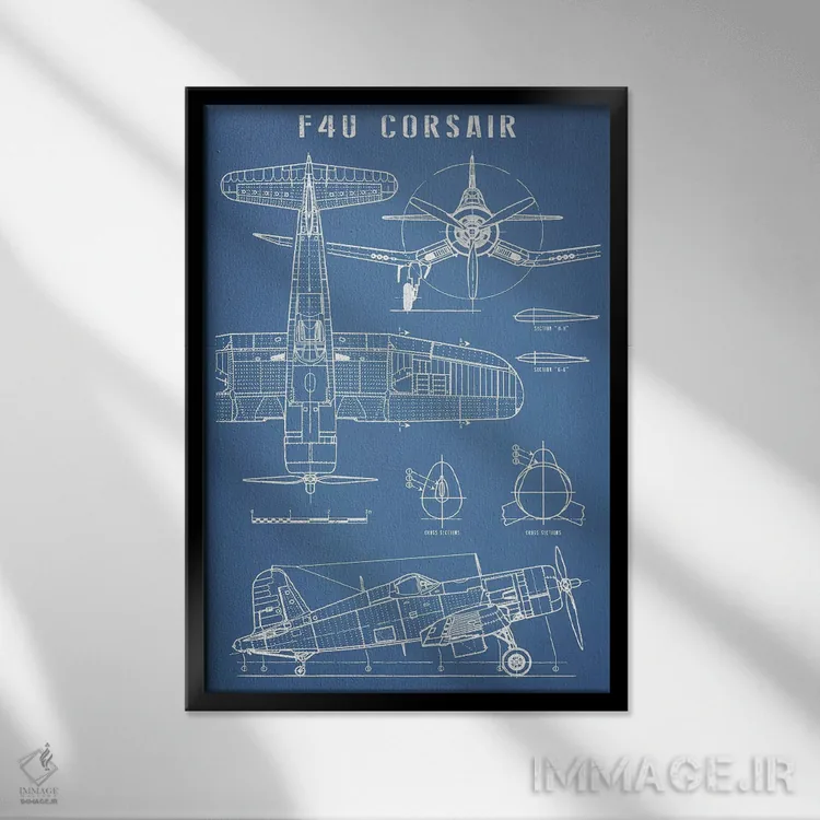 «نقشهٔ هواپیمای کلاسیک ناوی F4U کورسیر» اثرِ «اکشن بلوپرینتس (نقشههای اکشن)» با موضوعِ این اثر، برای استودیوها، اتاق کار و چیدمانهای مدرن خیلی خوب جواب میدهد.