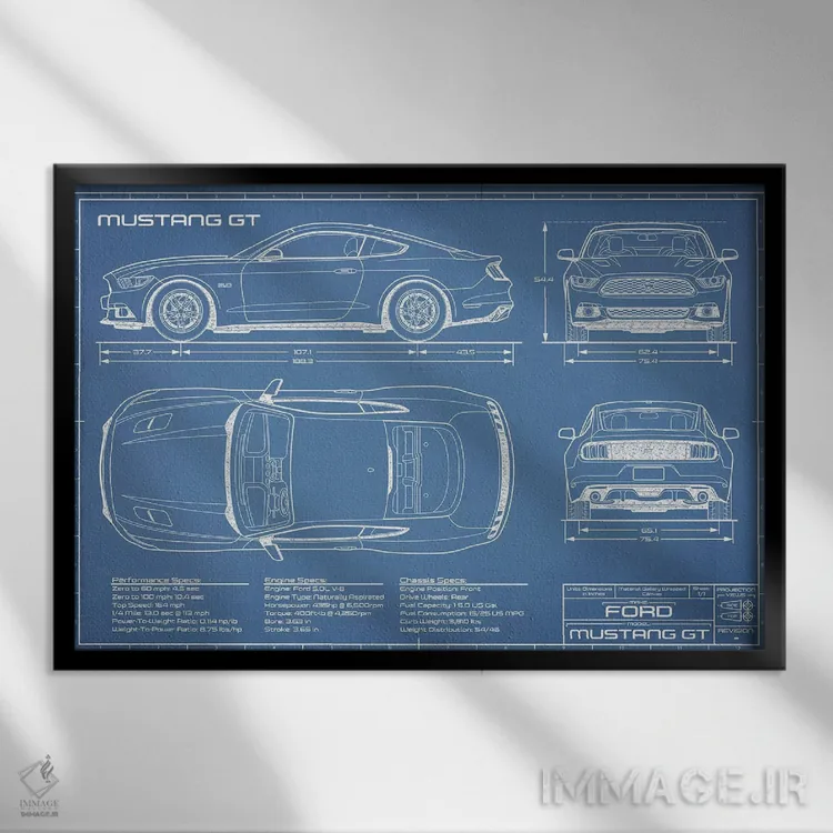 تابلو نقشهٔ موستانگ GT (۲۰۱۵-۲۰۱۷) اثر اکشن بلوپرینتس (نقشه‌های اکشن) - نمای پرسپکتیو محصول