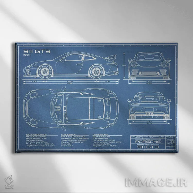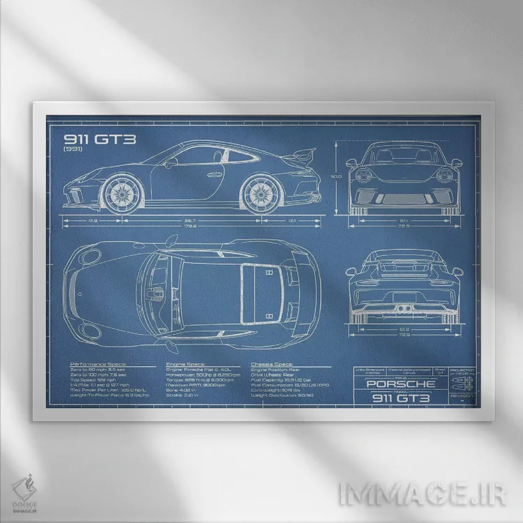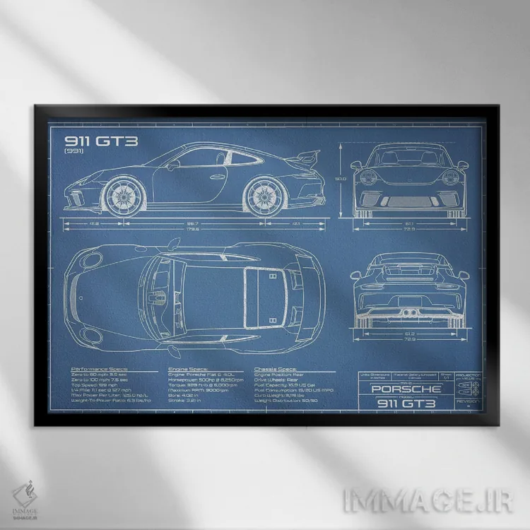 تابلو نقشهٔ پورشه 911 GT3 (991) اثر اکشن بلوپرینتس (نقشههای اکشن)