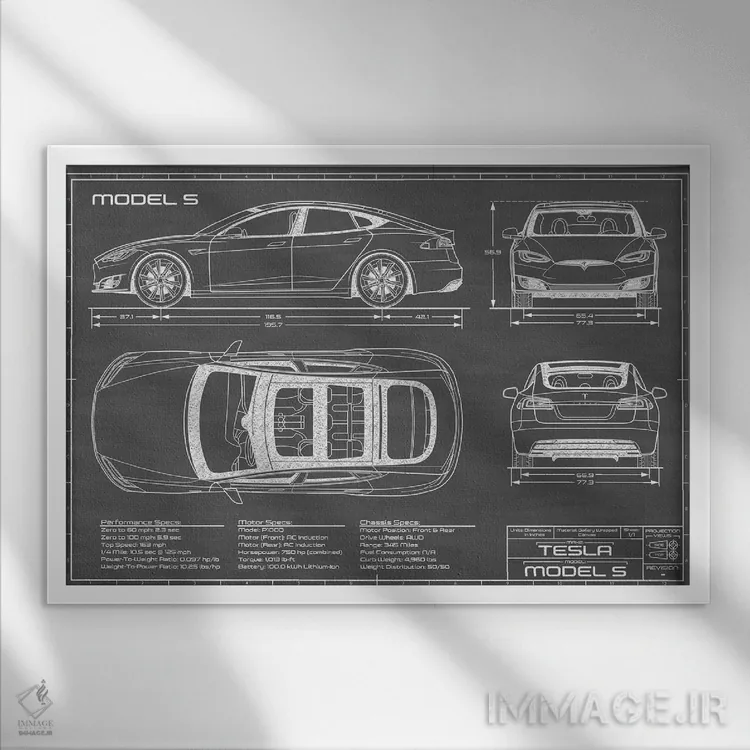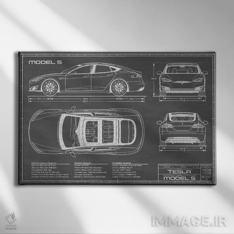 تابلو دکوراتیوِ «تسلا مدل S (۲۰۱۶—۲۰۲۰) مشکی» با حالوهوای این اثر؛ مناسب برای فضاهای مدرن، مینیمال و حتی صنعتی اثرِ «اکشن بلوپرینتس (نقشههای اکشن)».