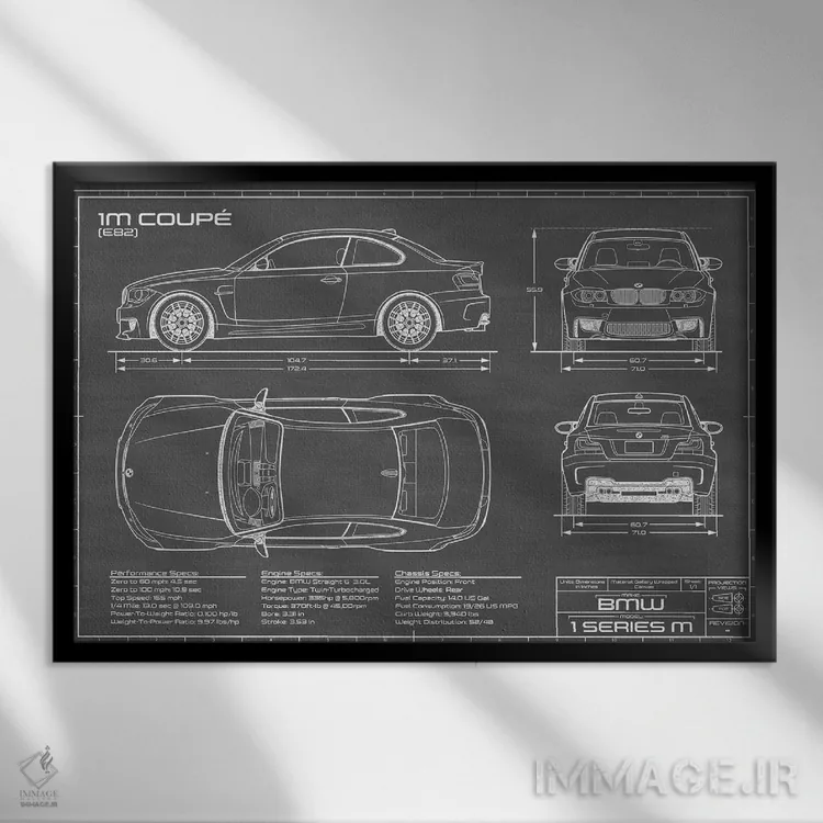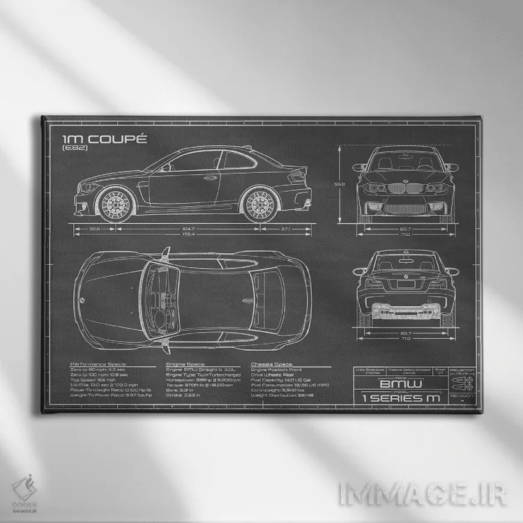تابلو دکوراتیو بی ام و 1M کوپه مشکی اثر اکشن بلوپرینتس