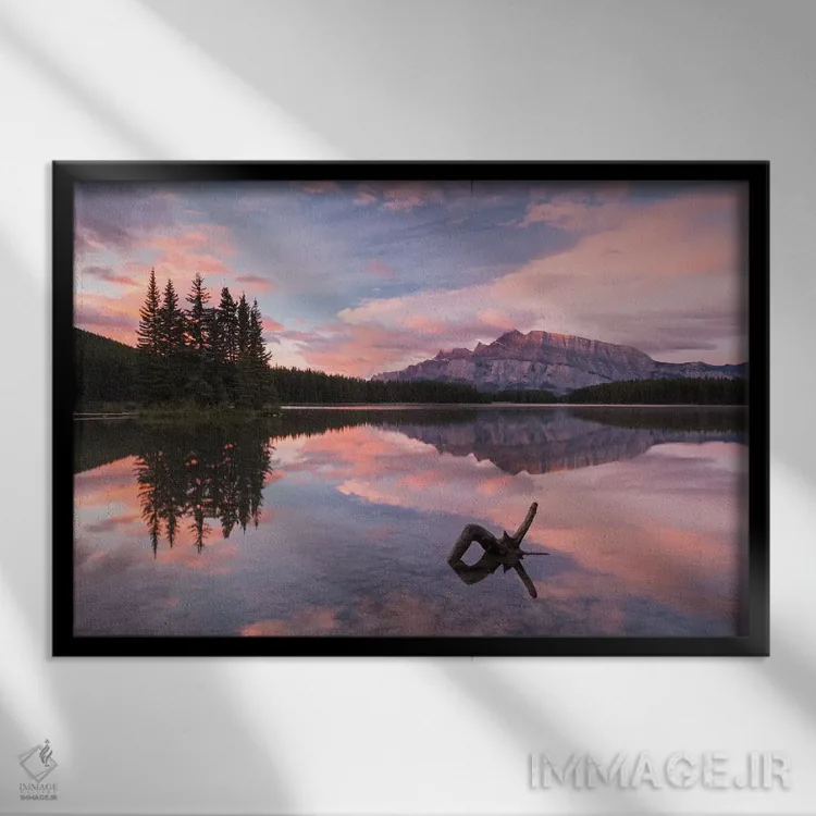تابلو طلوع آفتاب در دریاچه تو جک اثر آدام برتون - نمای قاب‌دار مشکی