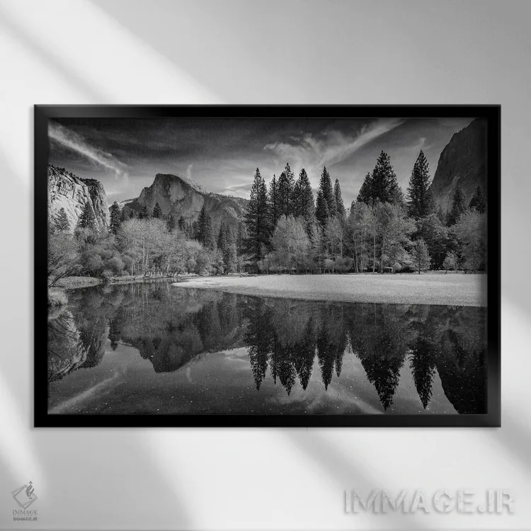 تابلو انعکاس‌های هاف دوم، یوسمیتی اثر آدام برتون - نمای قاب‌دار مشکی