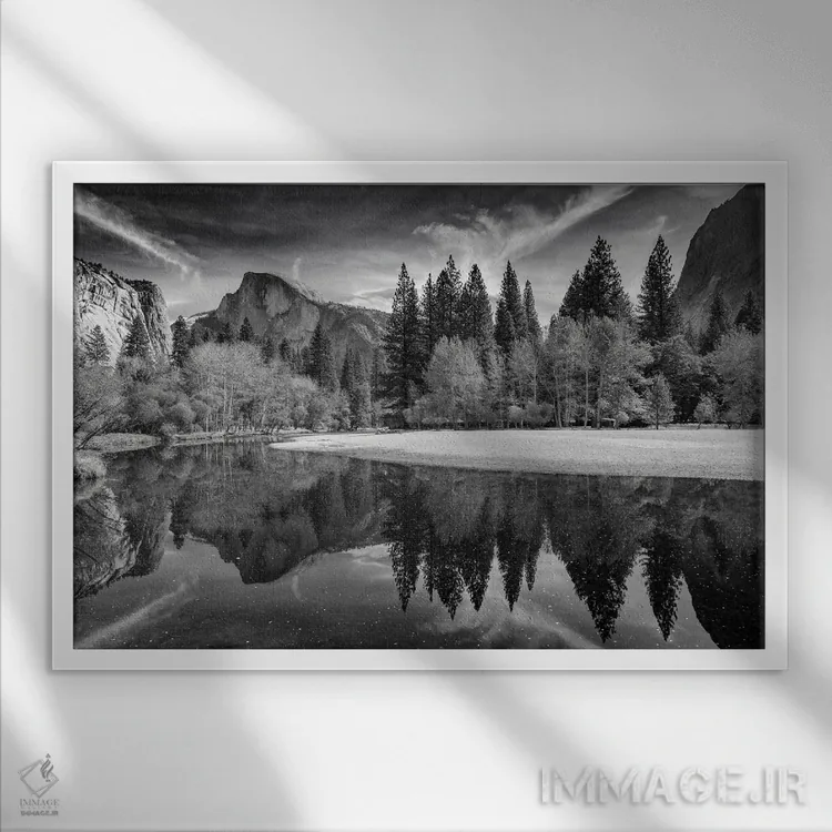 تابلو انعکاس‌های هاف دوم، یوسمیتی اثر آدام برتون - نمای قاب‌دار سفید