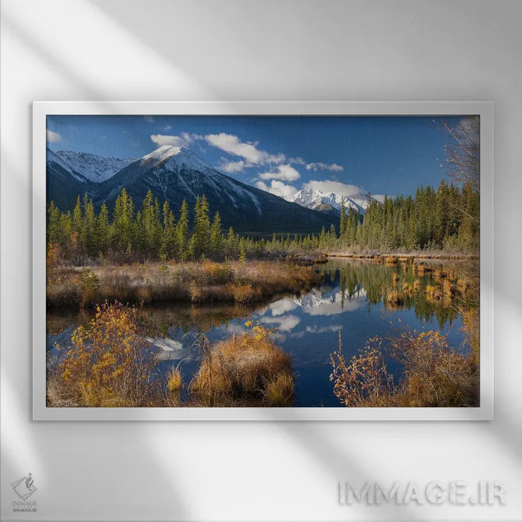 تابلو دریاچه‌های ورمیلیون (کانادا) اثر آدام برتون - نمای قاب‌دار سفید