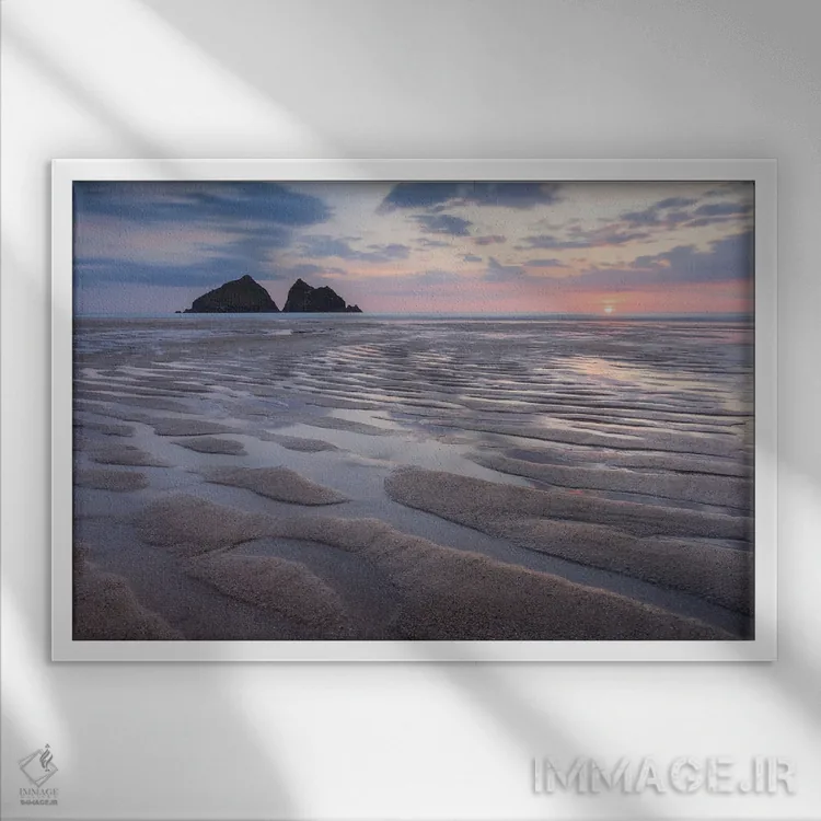 تابلو غروب جزیره اثر آدام برتون - نمای قاب‌دار سفید