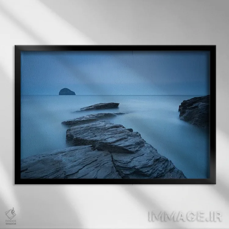 تابلو آبی‌های ترباروث (ساحل در کورنوال) اثر آدام برتون - نمای قاب‌دار مشکی