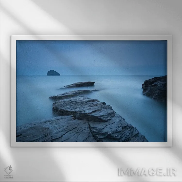 تابلو آبی‌های ترباروث (ساحل در کورنوال) اثر آدام برتون - نمای قاب‌دار سفید