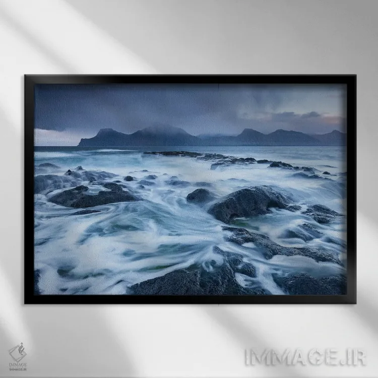 براساس پالت سرد اثر، قاب سفید مات (فریم باریک) پیشنهاد اول است و نقرهای برسخورده (متالیک) مکمل. برای سفارشهای پروژهای با ابعاد و قابهای اختصاصی با ایماژ در تماس باشید.