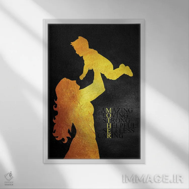 «روز مادر» اثرِ «آدریان بالدُوینو» یک قاب تایپوگرافیک است که ریتم فضا را منظم نگه میدارد؛ برای دیوارهای سفید و چیدمانهای ساده، گزینهی خوبی است.