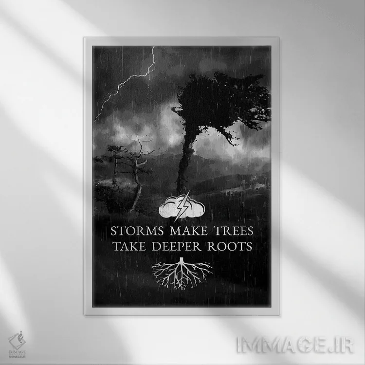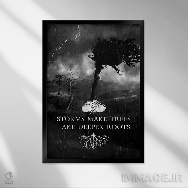 تابلو طوفان‌ها و درختان اثر آدریان بالدُوینو - نمای قاب‌دار مشکی