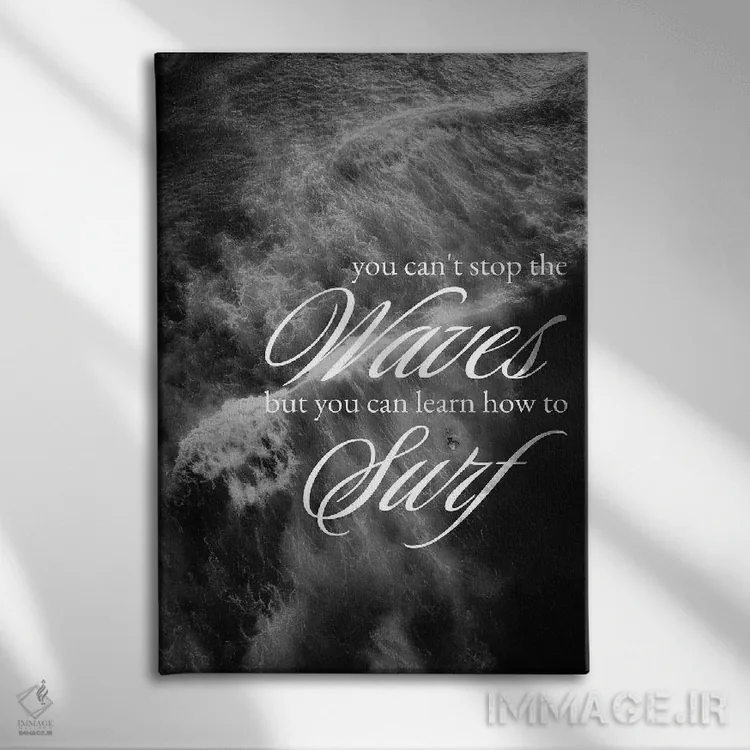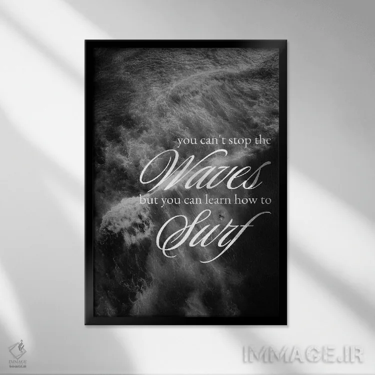 تابلو یاد بگیر روی موج‌ها سواری کنی اثر آدریان بالدُوینو - نمای قاب‌دار مشکی