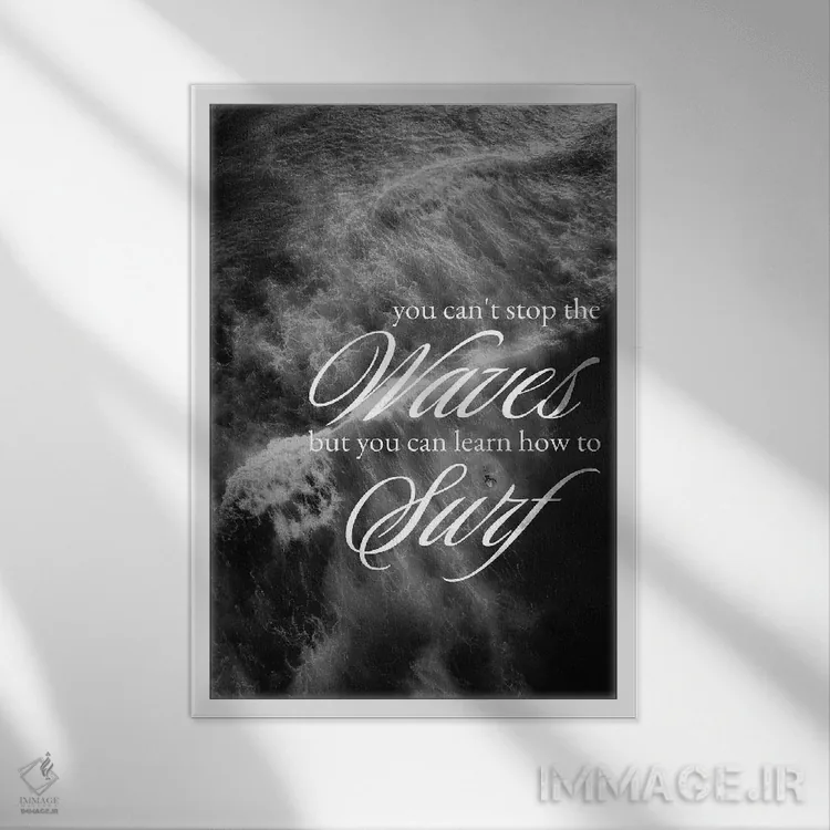 تابلو یاد بگیر روی موج‌ها سواری کنی اثر آدریان بالدُوینو - نمای قاب‌دار سفید