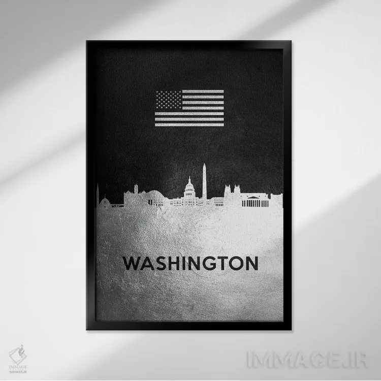 تابلو خط افق نقره‌ای واشینگتن اثر آدریان بالدُوینو - نمای قاب‌دار مشکی