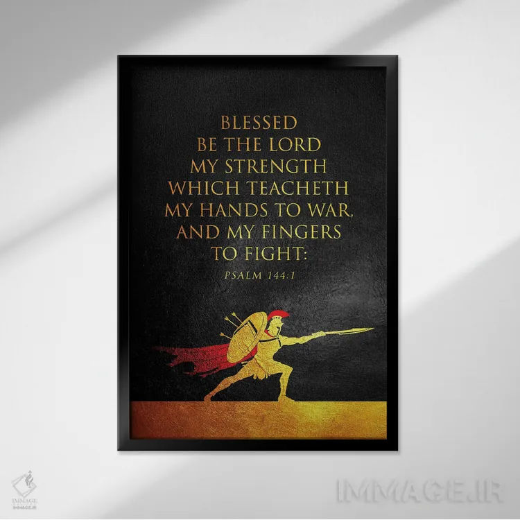 تابلو آیهٔ مزامیر ۱۴۴:۱ (کتاب مقدس) اثر آدریان بالدُوینو - نمای قاب‌دار مشکی