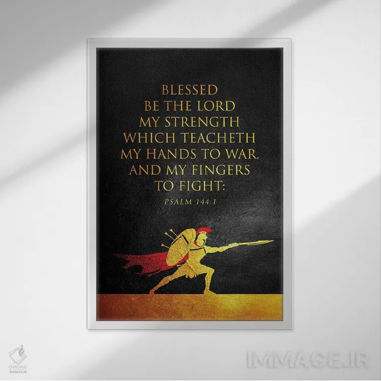 تابلو آیهٔ مزامیر ۱۴۴:۱ (کتاب مقدس) اثر آدریان بالدُوینو - نمای قاب‌دار سفید