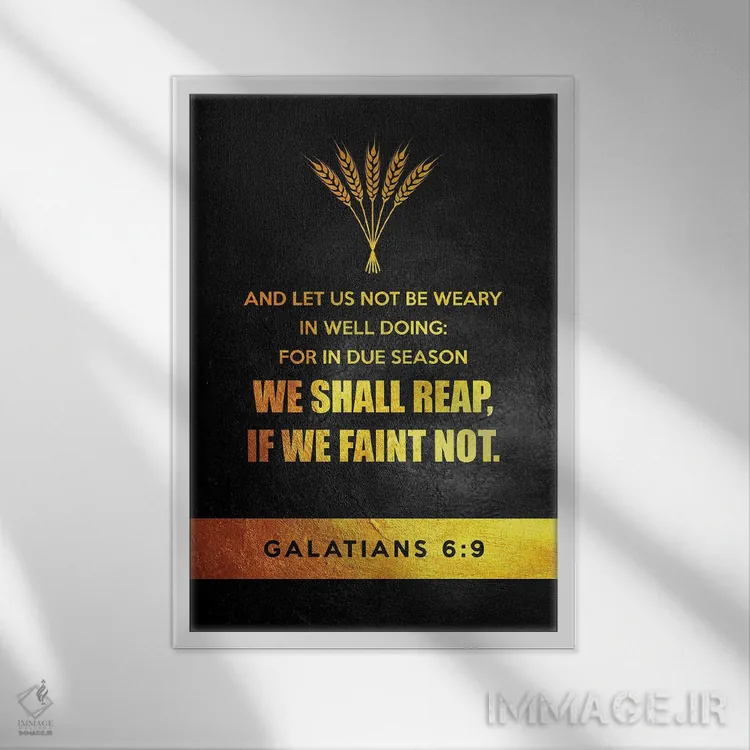 تابلو آیه‌ای از انجیل غلاطیان ۶:۹ اثر آدریان بالدُوینو - نمای قاب‌دار مشکی