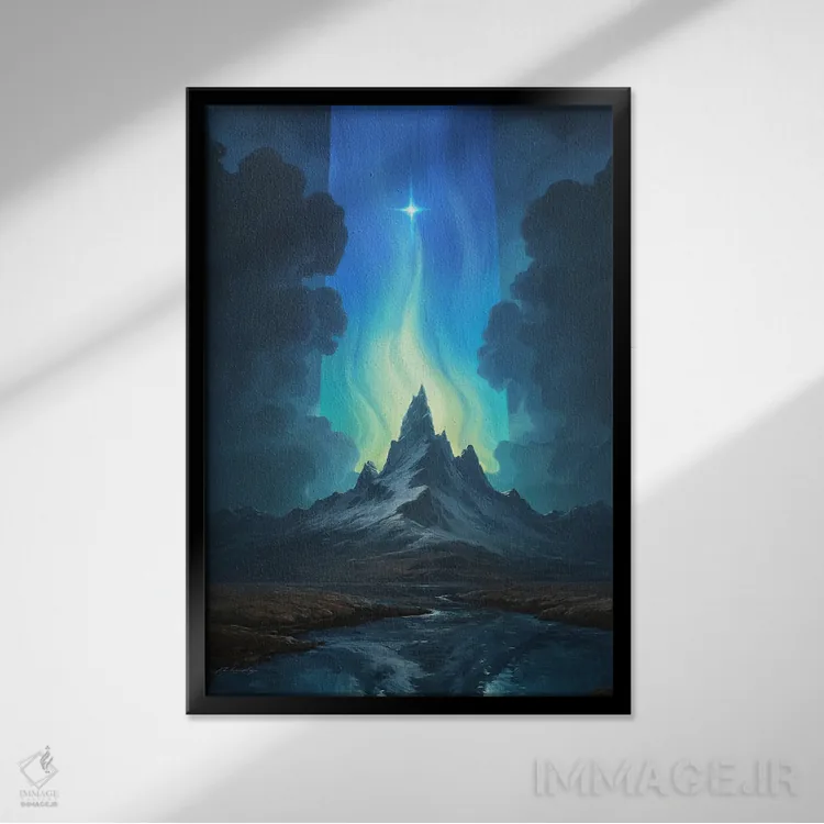 براساس پالت سرد اثر، قاب سفید مات (فریم باریک) پیشنهاد اول است و نقرهای برسخورده (متالیک) مکمل. برای سفارشهای پروژهای با ابعاد و قابهای اختصاصی با ایماژ در تماس باشید.