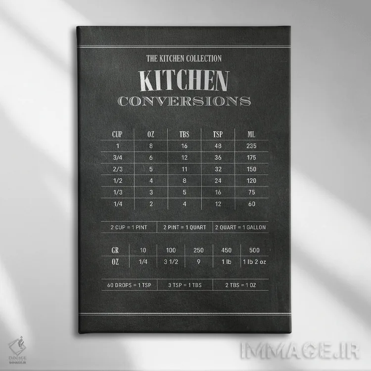 تابلو تبدیلات آشپزخانه‌ای (تبدیل واحدهای اندازه‌گیری پخت‌وپز) اثر پوسترهای طراحی آلچرا - نمای پرسپکتیو محصول