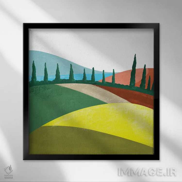 براساس پالت ترکیبی اثر، قاب تیک گرم (چوبی) پیشنهاد اول است و مشکی مات (فریم متوسط) مکمل. برای سفارشهای پروژهای با ابعاد و قابهای اختصاصی با ایماژ در تماس باشید.