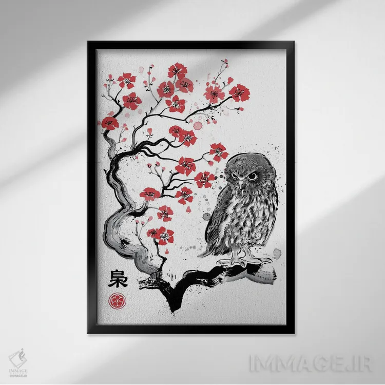 اگر میخواهید دیوار کمی سرزندگیِ محترمانه داشته باشد، «فوکورو سومیه (نقاشی سنتی جوهری جغد)» اثرِ «آنتونیو کامارنا» به دیوار، انرژیِ نرم و زنده میدهد، برای راهروها و ورودیهای گرم گزینهٔ مناسبیست. به دیوار، قصه میدهد—اما قصهای آرام و شیک.