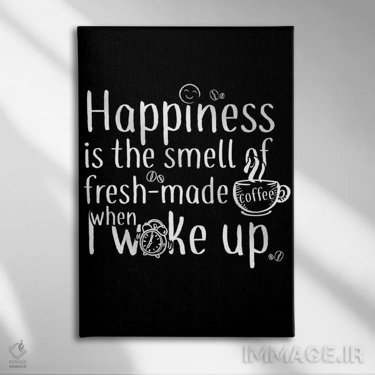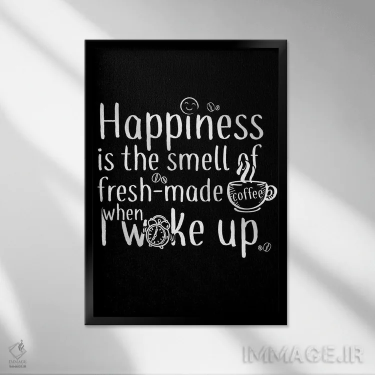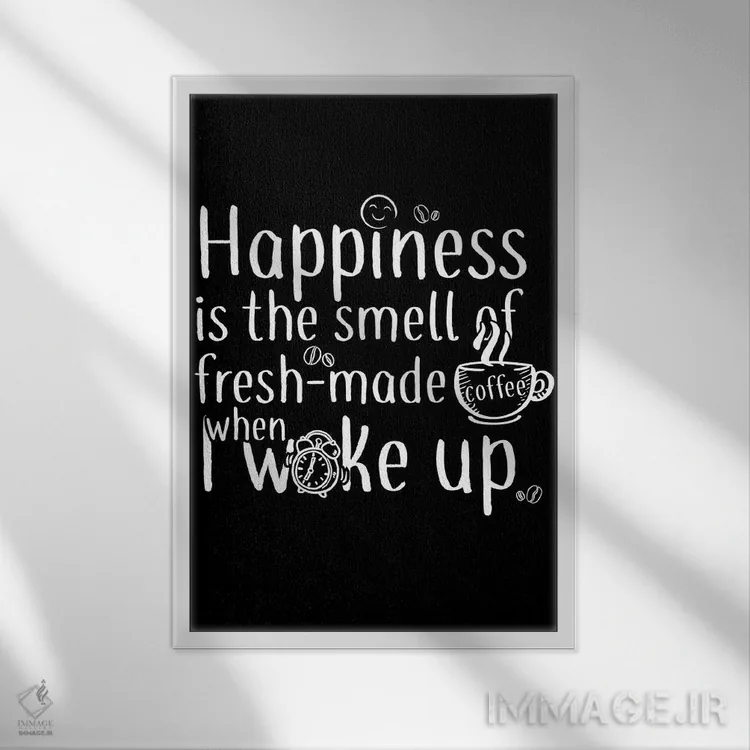 اگر دکور شما بر پایهی متن و تایپ است، «خوشبختی یعنی یک فنجان قهوه» اثرِ «آنتونیو کامارنا» با سبک پرداختِ هنری انتخابی تمیز و کاربردی است.