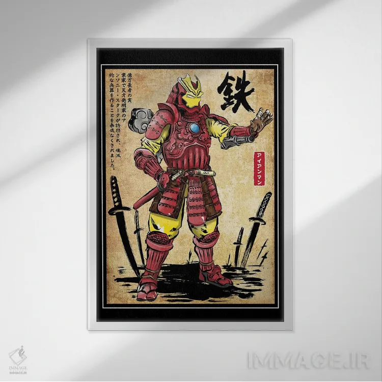 تابلو سامورایی آهنین اثر آنتونیو کامارنا - نمای قاب‌دار مشکی