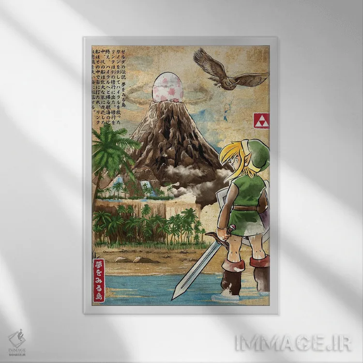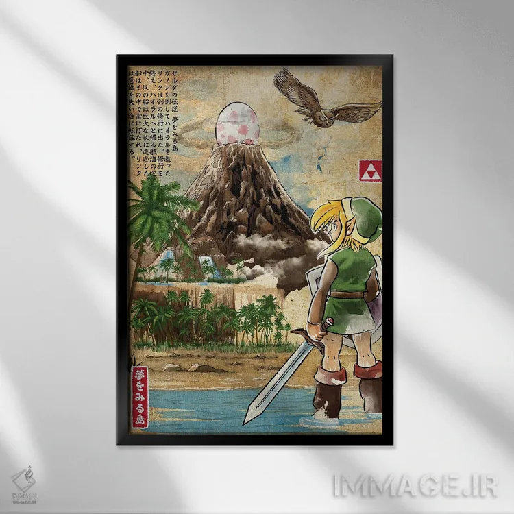 تابلو بیداری لینک (چاپ چوبی - زلدا) اثر آنتونیو کامارنا - نمای قاب‌دار مشکی