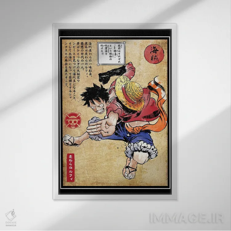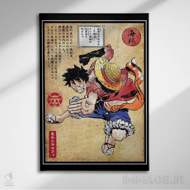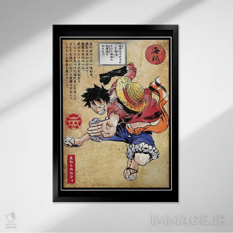 تابلو کاپیتان کلاه حصیری (چاپ چوبی - وان پیس) اثر آنتونیو کامارنا - نمای قاب‌دار مشکی