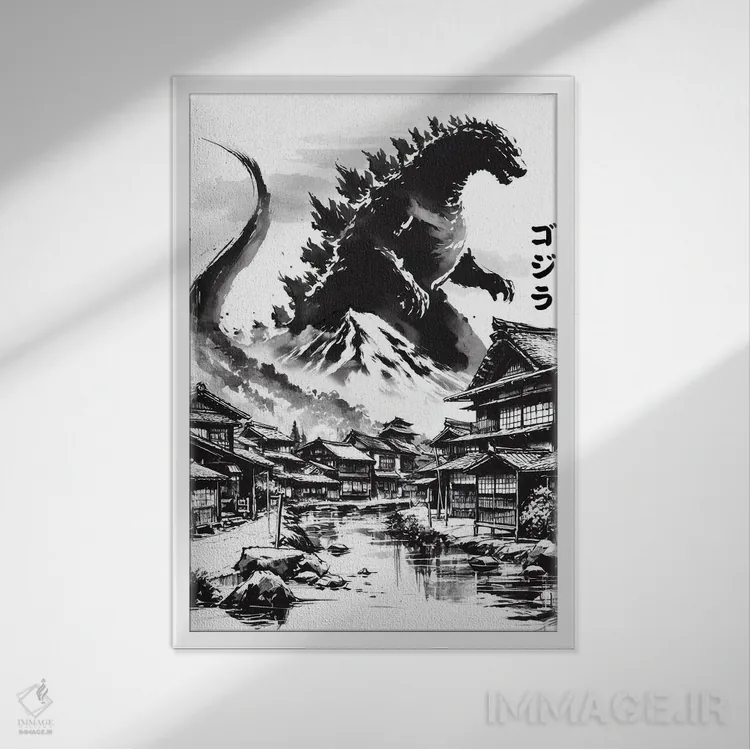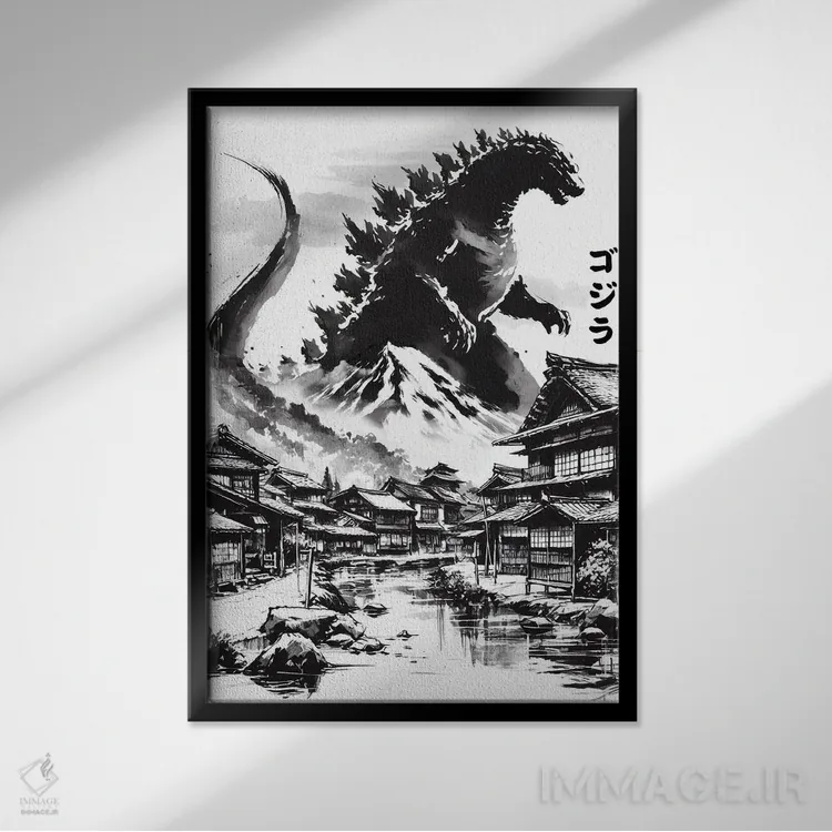 تابلو شاه در روستای ژاپنی اثر آنتونیو کامارنا - نمای قاب‌دار مشکی