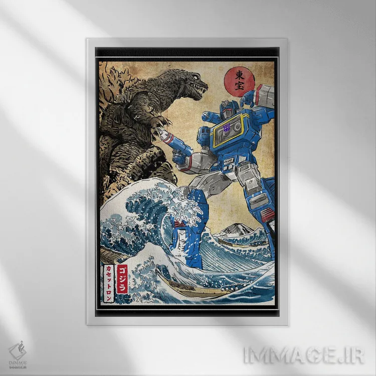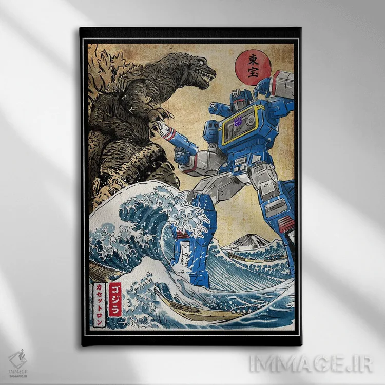 تابلو پادشاه هیولاها در برابر ساندویو (شخصیت ترنسفورمرز) اثر آنتونیو کامارنا