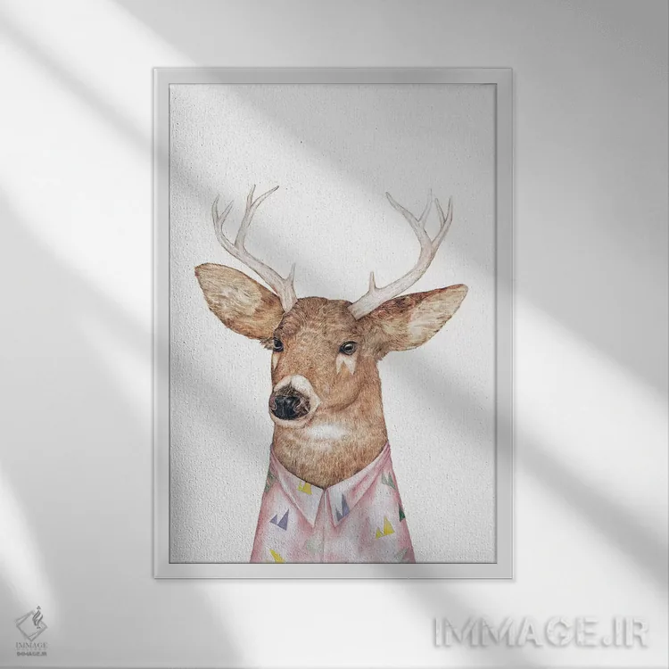 تابلو گوزن دم‌سفید اثر انیمال کرو (گروه هنری/نام هنری) - نمای قاب‌دار سفید