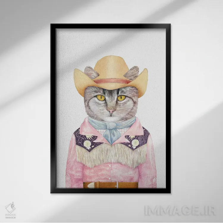 این اثر با عنوان «گربه روستایی» اثرِ «انیمال کرو (گروه هنری/نام هنری)» فضا را صمیمیتر و دعوتکنندهتر نشان میدهد؛ برای اتاق کودک (بدون لحن کودکانه) انتخابی خوشسلیقه است. هر بار نگاهش میکنید، یک جزئیات تازه به چشم میآید.