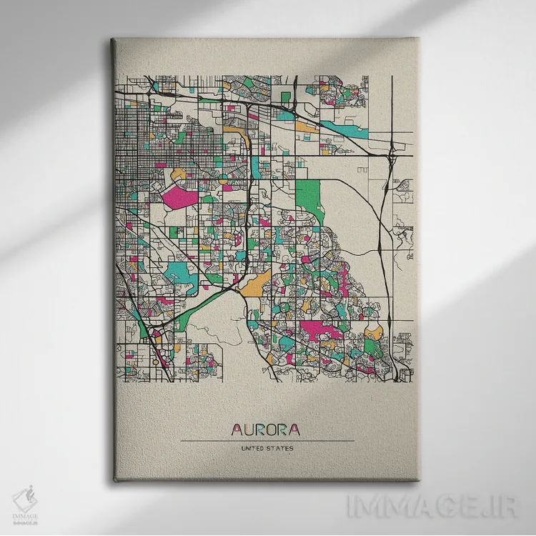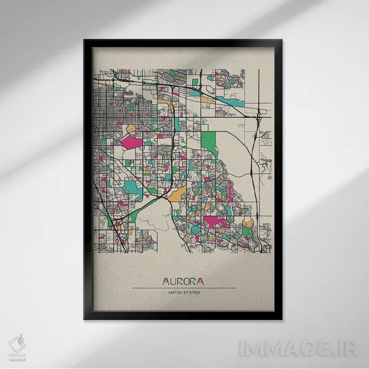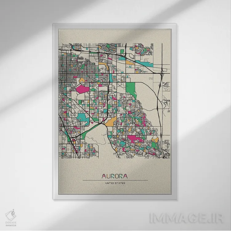 تابلو نقشه اورورا، کلرادو اثر آیشه دنیز آکِرمان - نمای قاب‌دار سفید