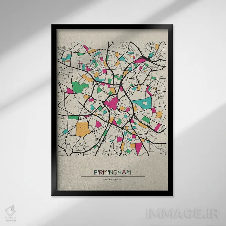 تابلو نقشه بیرمنگام، انگلستان اثر آیشه دنیز آکِرمان - نمای قاب‌دار مشکی