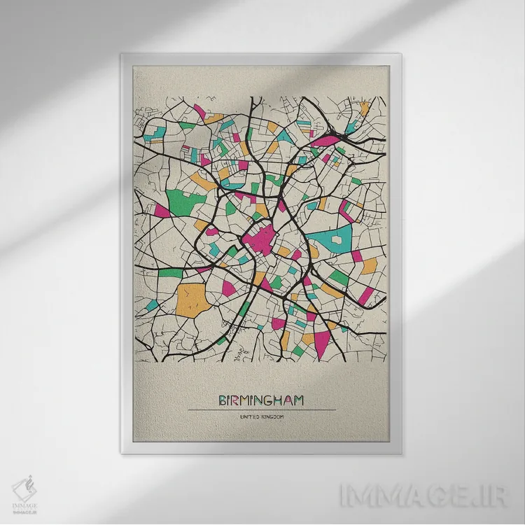 تابلو نقشه بیرمنگام، انگلستان اثر آیشه دنیز آکِرمان - نمای قاب‌دار سفید
