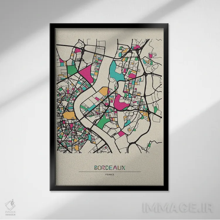 تابلو نقشه بوردو، فرانسه اثر آیشه دنیز آکِرمان - نمای قاب‌دار مشکی