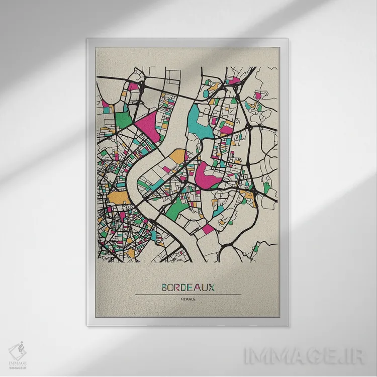 تابلو نقشه بوردو، فرانسه اثر آیشه دنیز آکِرمان - نمای قاب‌دار سفید