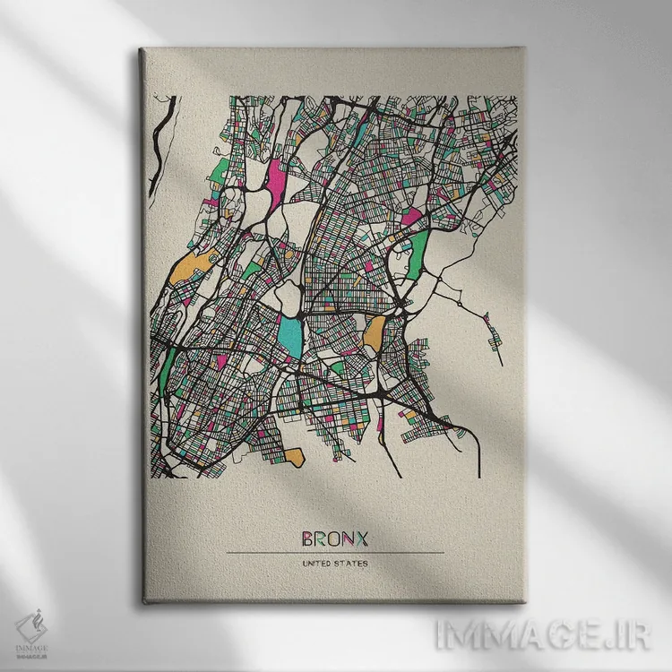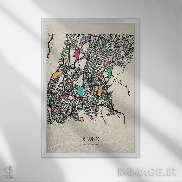 «نقشه برانکس، نیویورک» اثرِ «آیشه دنیز آکِرمان» برای چیدمانهای صنعتی یا مدرنِ شهری هم مینشیند؛ چون تصویر، واضح و امروزی است.