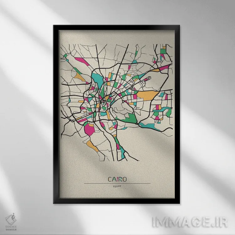 «نقشه قاهره، مصر» اثرِ «آیشه دنیز آکِرمان» یک قاب مدرن و خوشفرم است؛ موضوعِ این اثر در اجرای هنری خوانا و سئوپذیرِ دیواری میشود.