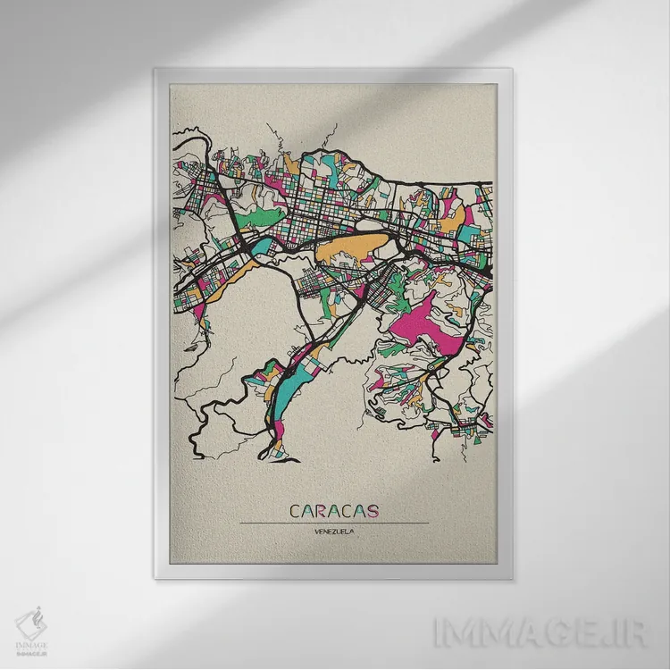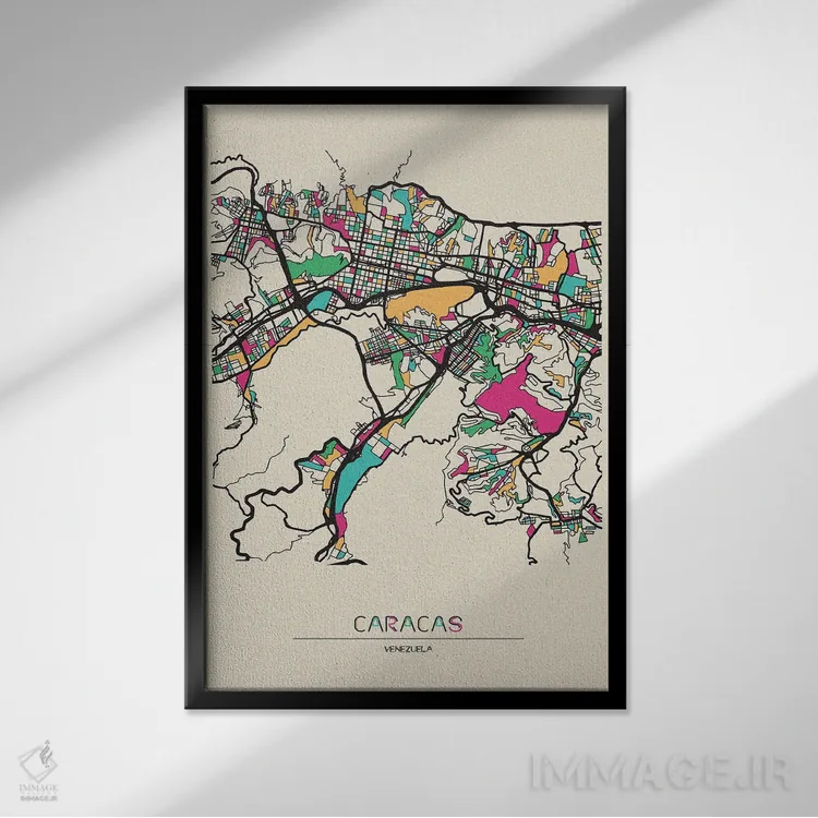 «نقشه کاراکاس، ونزوئلا» اثرِ «آیشه دنیز آکِرمان» یک قاب مدرن و خوشفرم است؛ موضوعِ این اثر در اجرای هنری خوانا و سئوپذیرِ دیواری میشود.