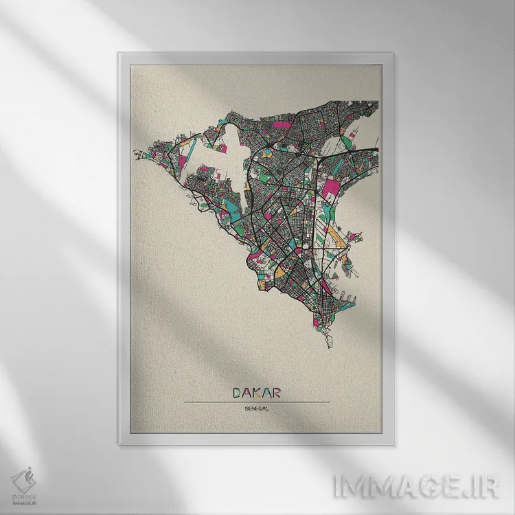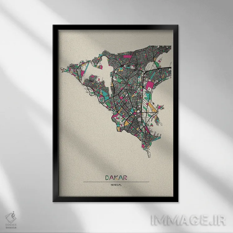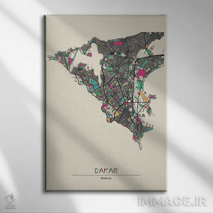 تابلو دکوراتیوِ «نقشه داکار، سنگال» با حالوهوای این اثر؛ مناسب برای فضاهای مدرن، مینیمال و حتی صنعتی اثرِ «آیشه دنیز آکِرمان».