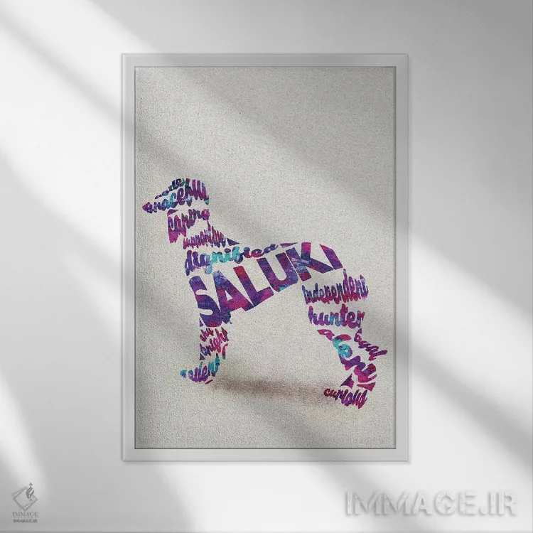 تابلو سالوقی (نوعی نژاد سگ تازی) اثر آیشه دنیز آکِرمان - نمای قاب‌دار سفید
