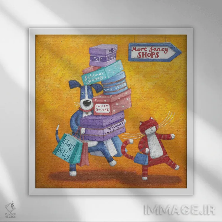 تابلو خرید تا از پا بیفتد! اثر پیتر آدرلی - نمای قاب‌دار سفید