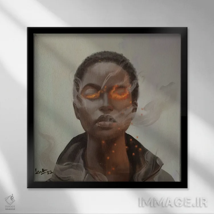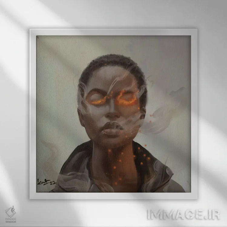 تابلو آتشفشان اثر آدکونله آدلاکه - نمای قاب‌دار سفید