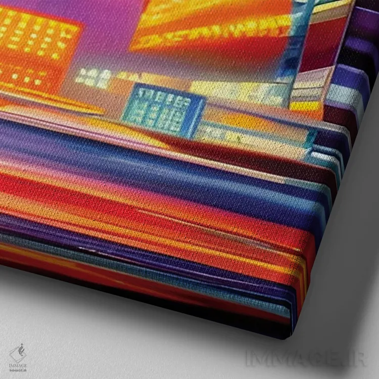 تابلو شهر سایبرپانک رنگارنگ اثر آلساندرو دلا توره - نمای نزدیک بافت بوم