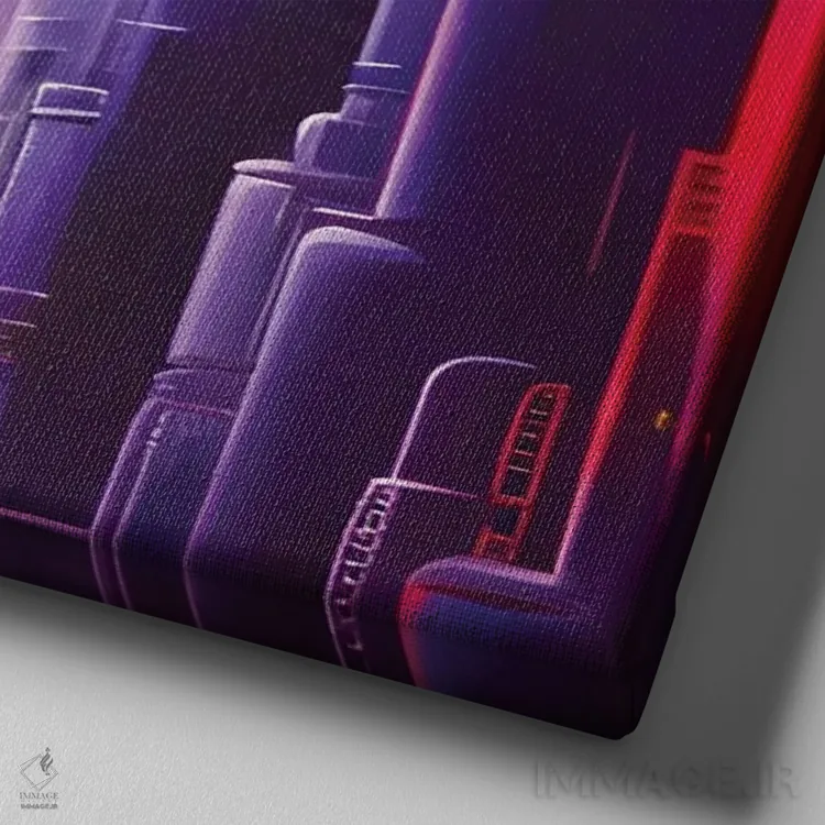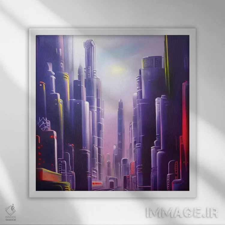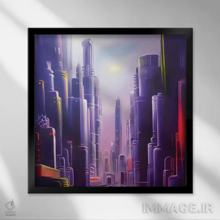 «شهر آیندهنگر ارغوانی سایبرپانک» اثرِ «آلساندرو دلا توره» با حس هنری، این اثر را به دیوار میآورد؛ برای فضاهای کمجزئیات و رنگهای خنثی، عالی است.