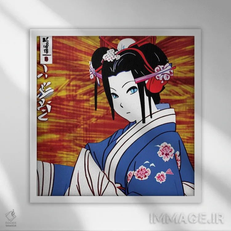 تابلو گیشا در انیمه روی زمینه آبی اثر آلساندرو دلا توره
