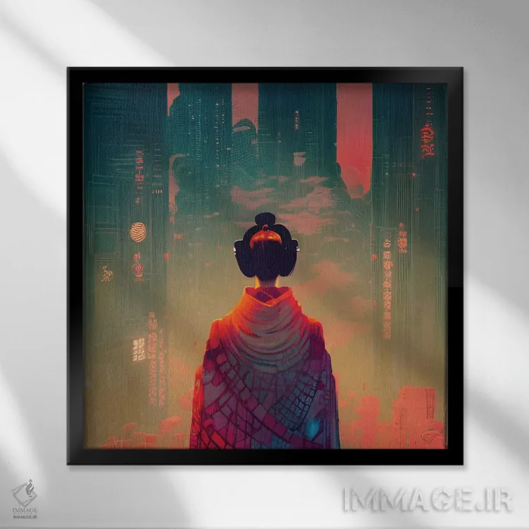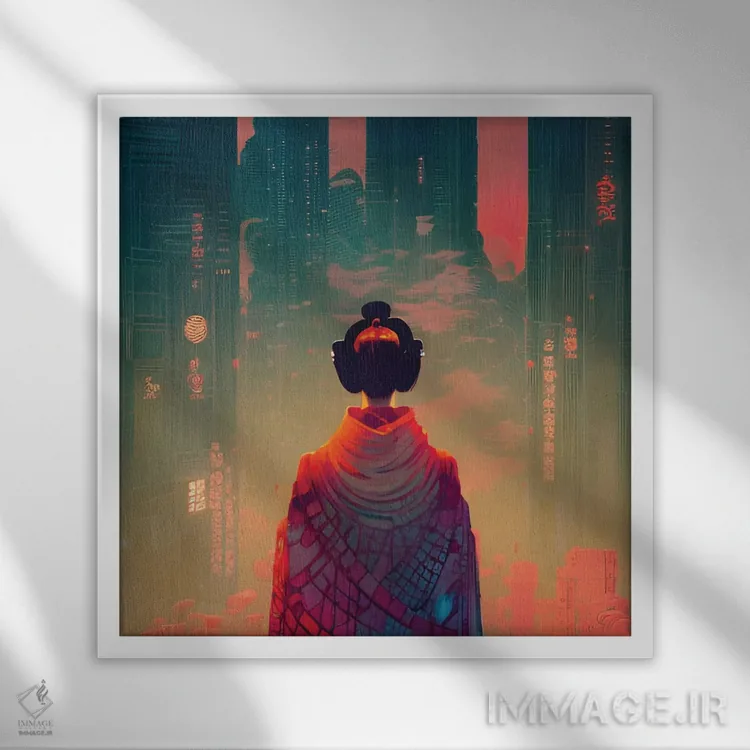 تابلو دکوراتیوِ «گیشا در شهر سایبرپانک ۲» با حالوهوای این اثر؛ مناسب برای فضاهای مدرن، مینیمال و حتی صنعتی اثرِ «آلساندرو دلا توره».