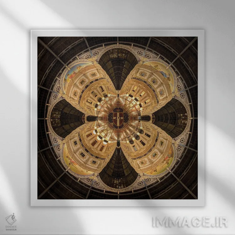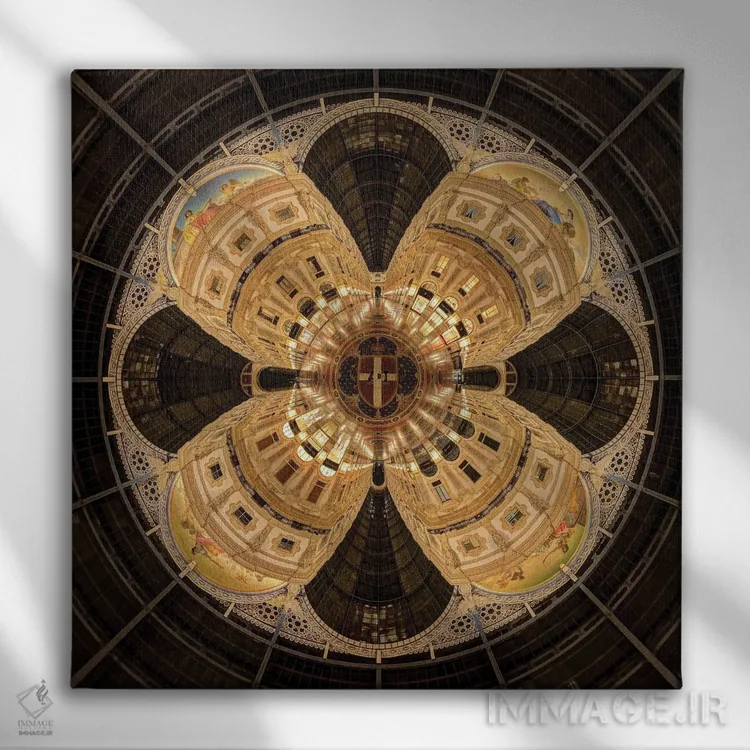 تابلو دکوراتیوِ «کاخ معماری قدیمی گالریا ویتوریو امانوئله در میلان، ایتالیا» با موضوعِ این اثر؛ یک یادآوری دلنشین از فضاهای شهری و سفر اثرِ «آلساندرو دلا توره».